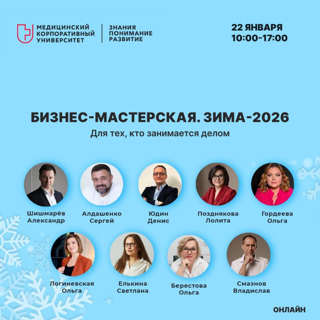 Уважаемые коллеги! Приглашаем вас на 9-ю Бизнес-мастерскую Медицинского Корпоративного Университета! Это масштабное онлайн-мероприятие для руководителей и управленческих команд медицинских клиник.